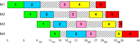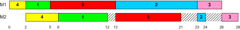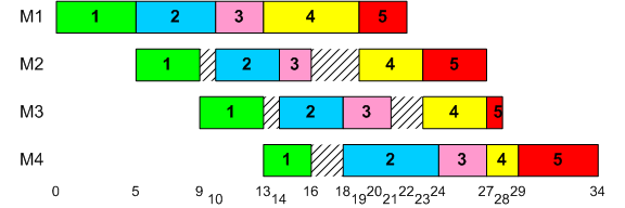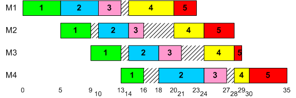 Permutation flow shop with ordering (1,2,3,4,5)