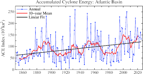 NOAA Hurricane Research Division(HRD) Atlantic Oceanographic & Meterologica Laboratory for 1851-2023.