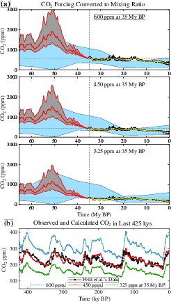 (b)Petit et al. data, 600 ppm, 450 ppm, 325 ppm,