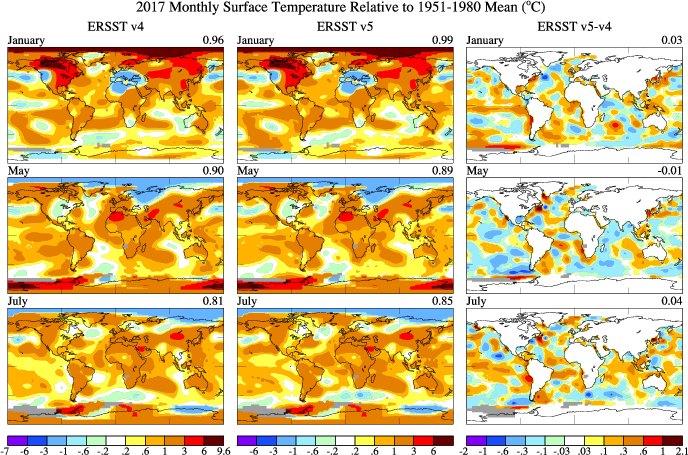 On August 15, 2017 GISS switched from NOAA/NCDC's Extended Reconstructed Sea Surface Temperature (ERSST) dataset version 4 to version 5 in their temperature analysis.