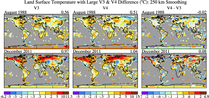 Comparison of v3 and v4 for the month with largest difference in recent years.
