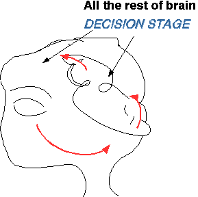 The usual assumptions about the decision stage are very simple compared to the large amount of brain that they are the "stand-in" for.