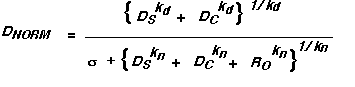 The exponents kd and kn are the powers in the power-summation rules of the decision and normalization stages respectively. They may both be set to many people's favorite value (i.e. 2) without much loss for our predictions, which turn out not to be sensitive (yet) to this variation.